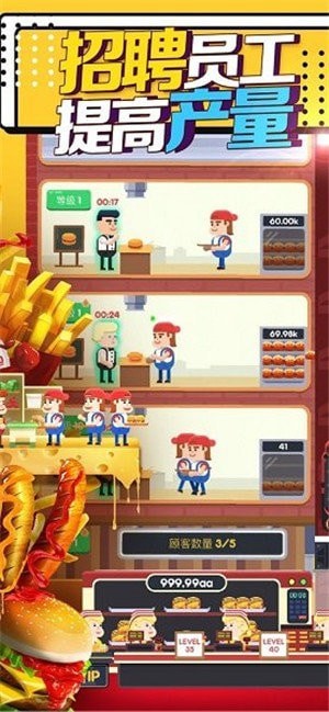 3.不断改造和升级您的餐厅,开发更多风味的汉堡。