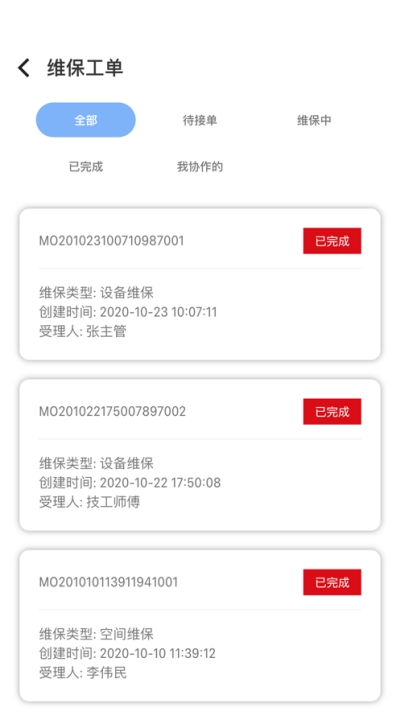 1、确认签字,能使用维修已经完成的工单上面的确认签字功能确认维修完成并在线签字验收;