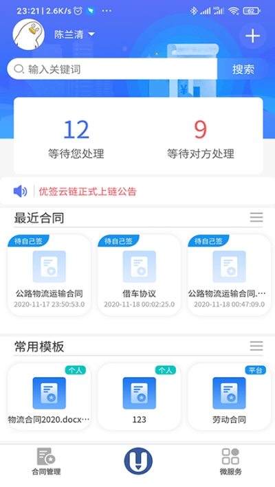 优签云链app主要为用户提供了可在线上签署合同的便利功能。用户可以使用这款软件来认证安全功能以及个人的信息,可以享受到专业的安全服务保证。此外软件还可以让各大企业之间都通过互联网达成共识和合作,实现双赢。如果有朋友感兴趣的话,不妨下载优签云链app体验看看!