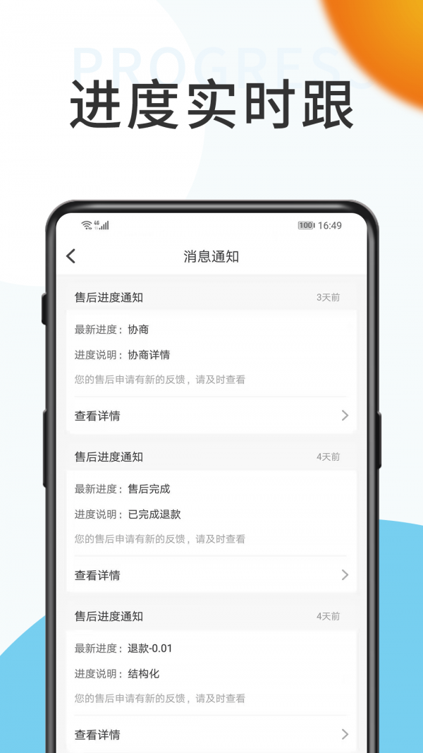 企业主可以随时查看下单的业务订单状态,实时跟踪业务办理的进度,业务办理完成之后及时推送消息告知企业主。