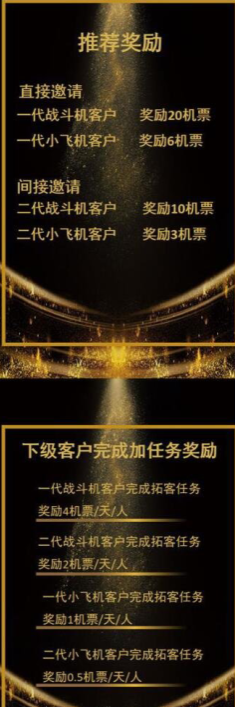注:小飞机用户推广战斗机用户收益只按照小飞机收益计算,战斗机用户推广小飞机或战斗机用户全部按照正常收益计算。