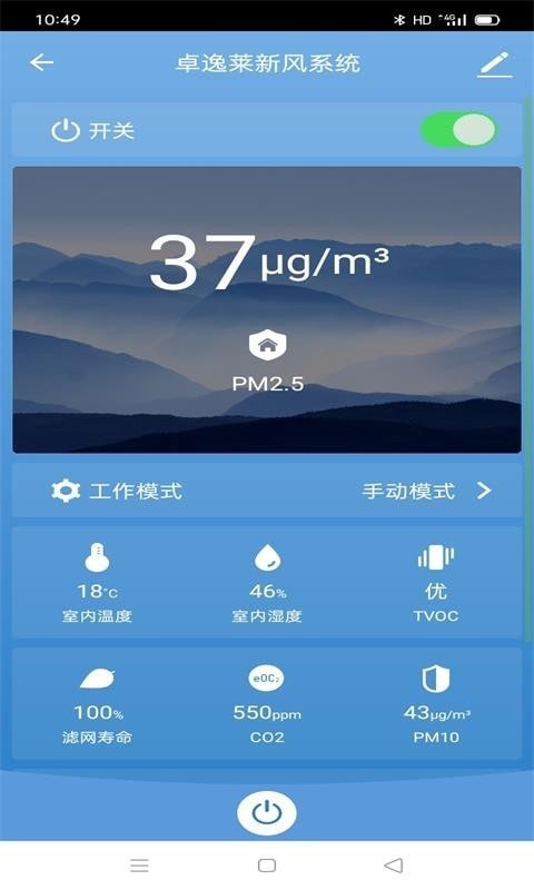 5、实时监控状态,系统的开关、工作模式和滤网寿命等信息可以一眼总览;