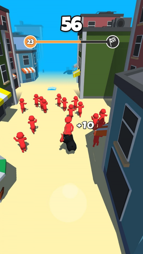 2、随着不断的奔跑,你将会越来越愤怒,其他群众会试图阻拦你,来赚取更多金币和更多分数。