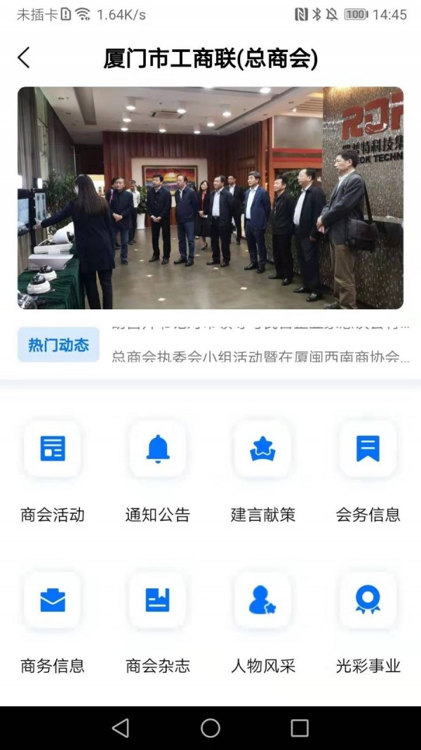 4.掌握商会信息,用户可以在线查看厦门总商会的简介、通知公告、参政议政、会务信息、活动资讯等信息