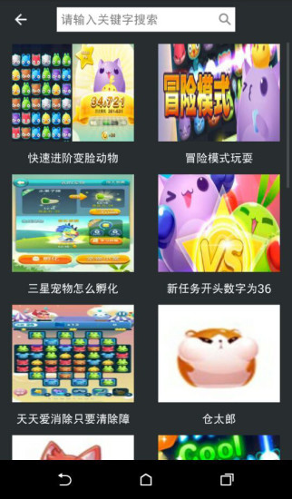 天天爱消除助手是一款受玩家欢迎的游戏攻略助手,它包括的主要内容有:动物大全、道具大全、勋章大全、实用资料、高分攻略、高分视频、最新资讯、消除礼包、送爱心、综合攻略等10个板块组成,内容讲解最新,最全,最有用,让新老玩家可以直观了解天天爱消除各种新动态。