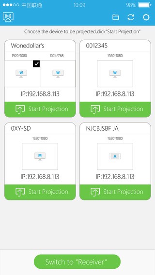 设备与设备之间的屏幕画面可以双向的传输,既可以当作投影的发送端、也可以当作投影的接收端,发送与接收的转换只需要一键操作,便捷高效!