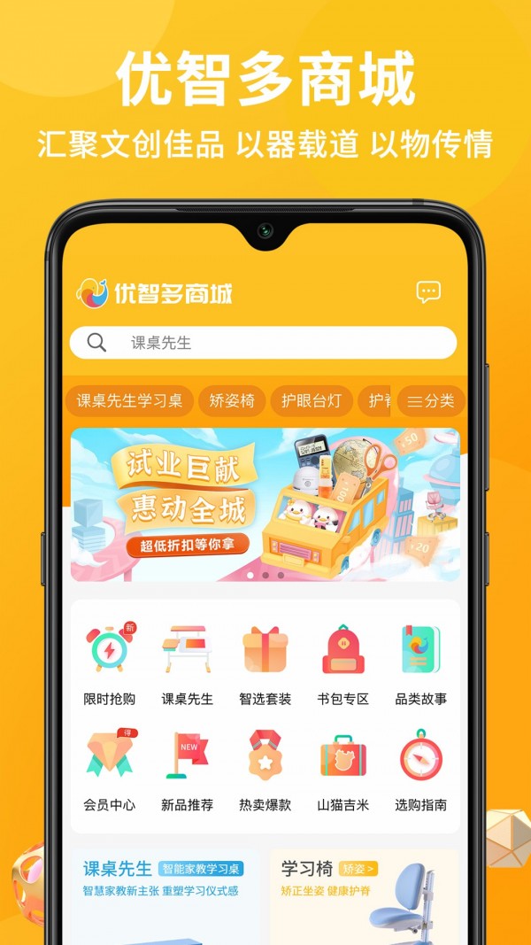 优智多始终坚持严格把关,甄选国内外优质产品,汇聚全球文创佳品。产品广泛涵盖智能课桌、益智玩具、创意礼品、数码科技、学习及生活用品等,收“货”多多,让顾客从优智多科技、优质、精致、趣味的品牌信仰中重拾初心,收获理想。
