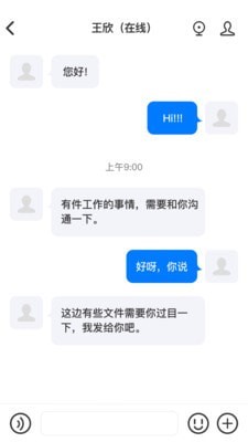 1、基于即时通讯技术,实现了点对点聊天、群组聊天、部门聊天、临时会话聊天,可以收发普通文本、图片、语音、视频、文件等,支持视频会议;