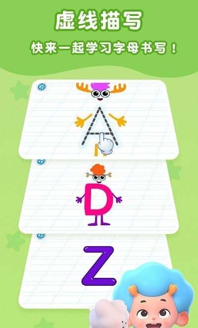 在游戏中学习字母ABC,学会字母发音和写法,培养英语学习兴趣。
