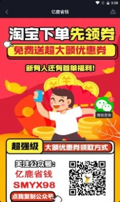 亿鹿省钱app可以为用户带来购物省钱返利的特大福利。平台上有海量优质的商品资源,这些资源种类丰富,可以满足用户的任何购物需求。用户通过软件进行线上购物的时候就可以有特殊渠道获得返利优惠的体验。除此之外,软件经常发放优惠券,也可以让用户体验到省钱的快乐。喜欢购物的小伙伴千万不要错过这款亿鹿省钱app!还有更多精彩的内容在下文,不要走开。
