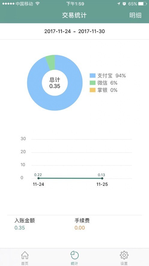 随时检查买卖概况,金穗商铺通app智能统计出买卖笔数和金额,轻松办理消费。