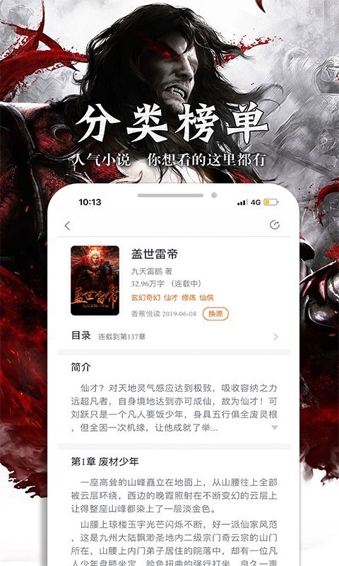 香蕉悦读app让你不再文荒。你可以在该软件上面搜索你喜欢的图书类型,如果你看了比较精彩的一部分,为了方便以后重温,你可以在该软件上面将你正在看的那一部分做一个标记,方便你下次查看,你还可以通过该软件做一些注释。
