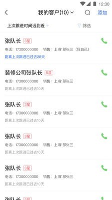 3.每日任务:客户跟进和拓客任务列表,公司用来给用户分派任务
