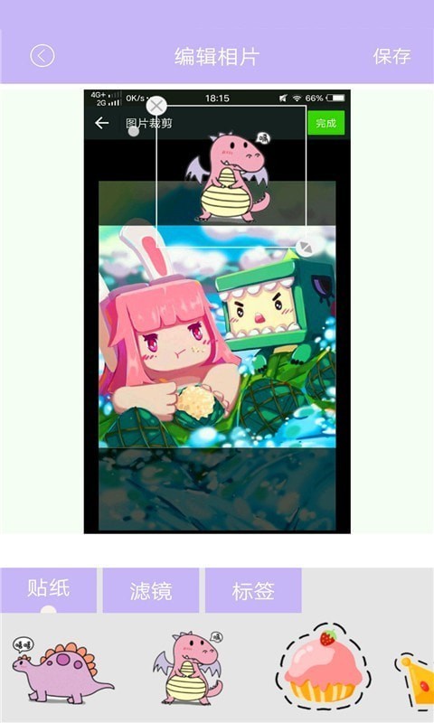 用户可以为图片加入合适的可爱贴纸,贴纸的位置和大小能够由用户自己调控