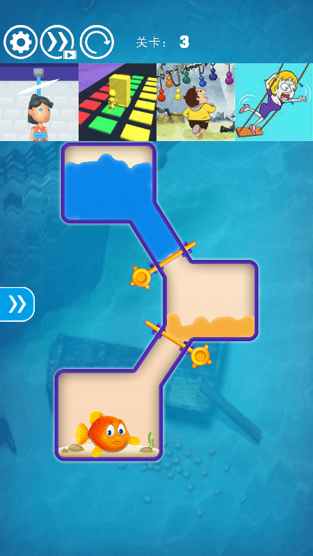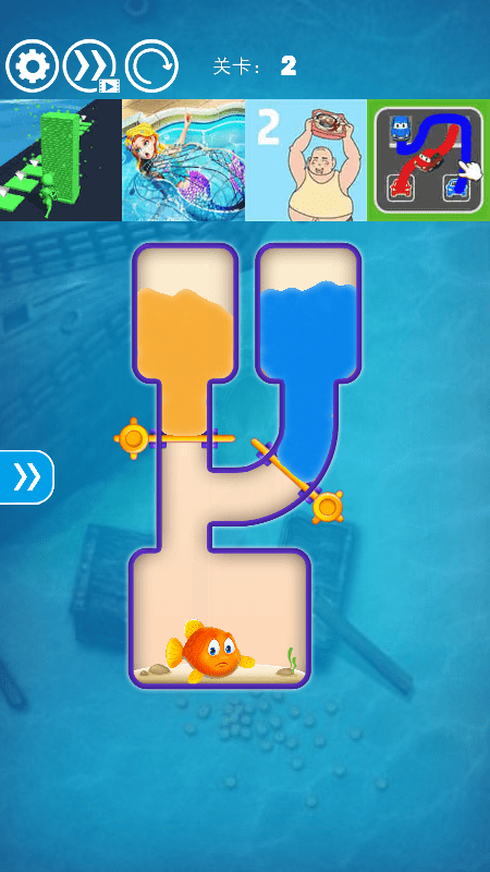 2、各种管道都有干净的水以及污水,完成污水处理任务后就可以让你的小鱼尽情通过了!