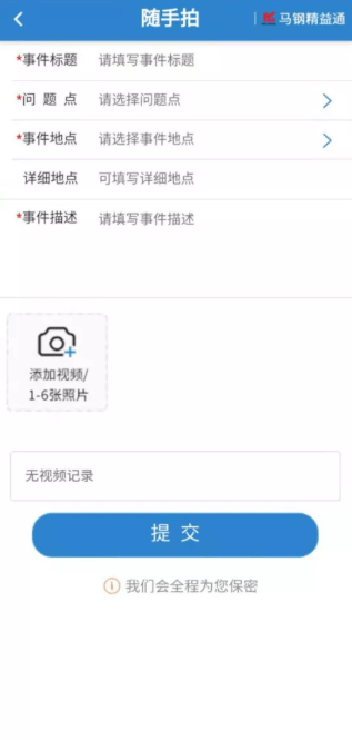 (2) 加入视频或1-6张照片,填写事务题目、事务地址、事务描写等外容后提交。(公司会全程为成绩暴光者保密)