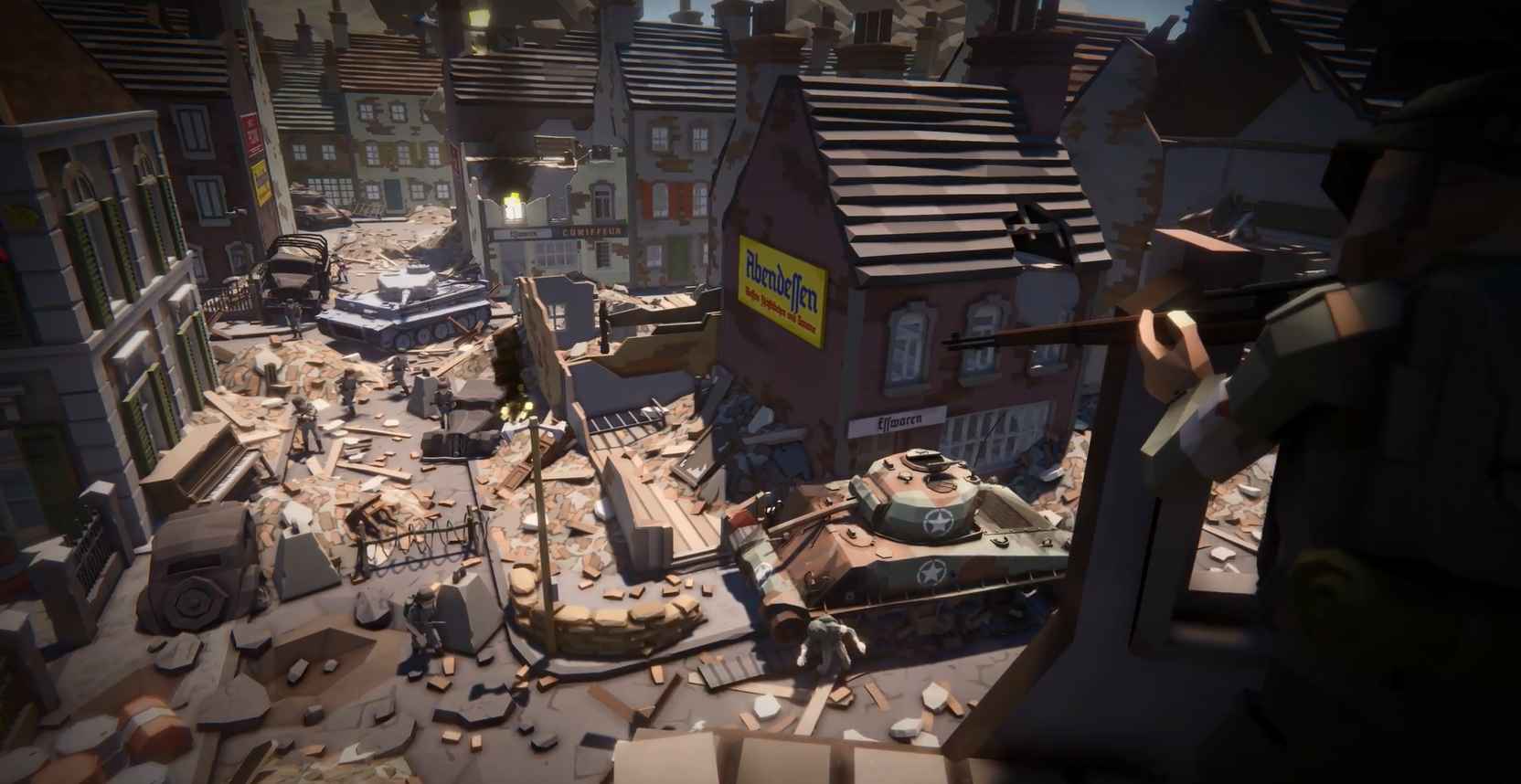 1、游戏采用低多边卡通风格,提供多种经典的枪械、坦克、载具、战机。