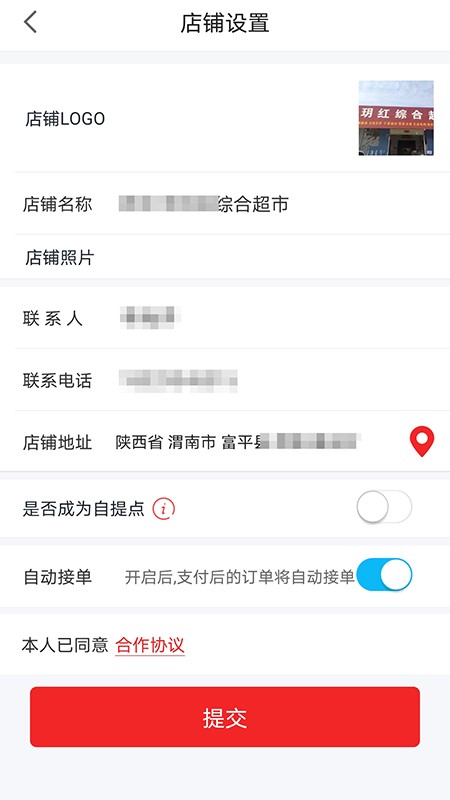 3、店铺设置版块,用户能够线上修改店铺的各种信息