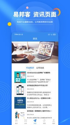 易邦客app是今天小编带来的一款非常实用的效率办公软件,利用这款软件可以实时查看行业的相关资讯,制作出优质的工作方案,也可以线上与其他同时进行工作交流,合理安排好自己的时间,让小伙伴们能够更加高效地进行办公。
