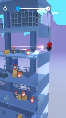 1、玩家将扮演成一个蜘蛛侠,从楼顶降落,同时打击楼道中的敌人,拯救人质;