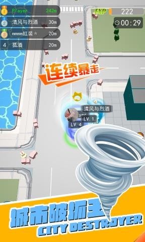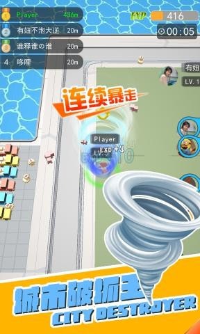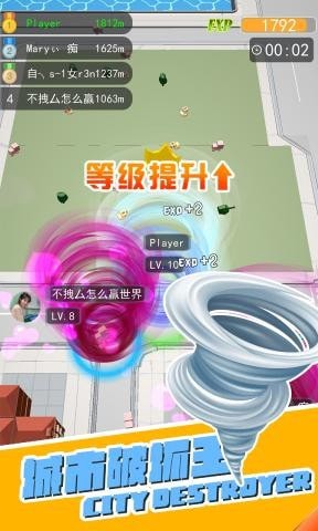 3、在侵占城市的同时要小心的躲开其他的龙卷风,你侵占或者损毁的东西越多越壮大。