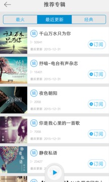3.下载收听:节目免费下载,在房间、在路上、外出时随时随地想听就听。