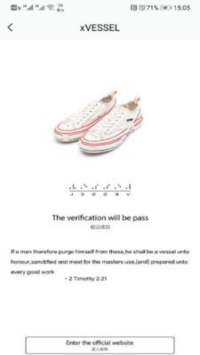 xVESSEL产品含有芯片,使用近距离无线通讯技术即安卓手机自带的NFC功能进行防伪辨别,是一款个性化、安全可靠的防伪软件,可以保障消费者对xVESSEL防伪产品迅速识别,保障消费者权益