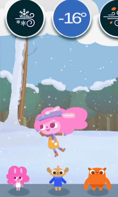 3、与天气角色互动,并按天气情况给角色穿上适宜的衣服哦,能够布景中添加动植物,观察不同的天气类型是如何影响它们的