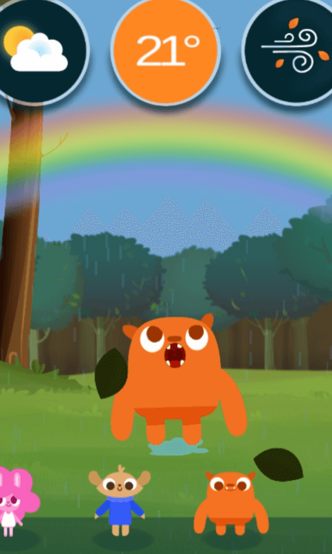 2、能够让宝宝认识晴、雨、雪!了解 9 种主要天气类型时,还能够创建彩虹、雷阵雨、暴风雪等天气
