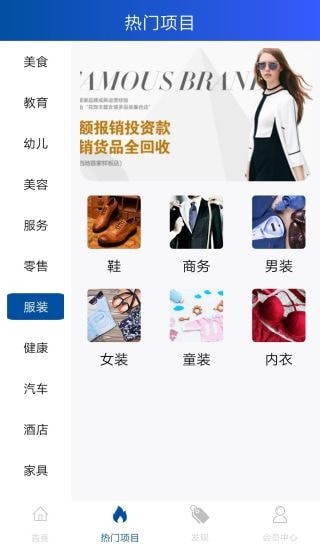 1、用户可以在软件中寻找丰富的创业范畴,包含美食、教育以及美容和服务等等,让用户自由挑选