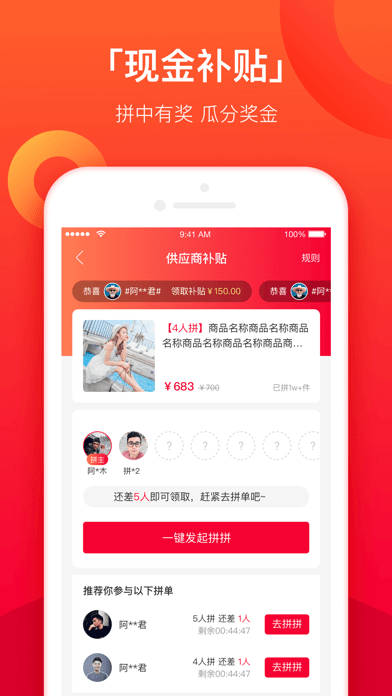 平台设计了独特的拼团抢购、红包补贴等全新颠覆式的趣味购物玩法和推广赚佣模式