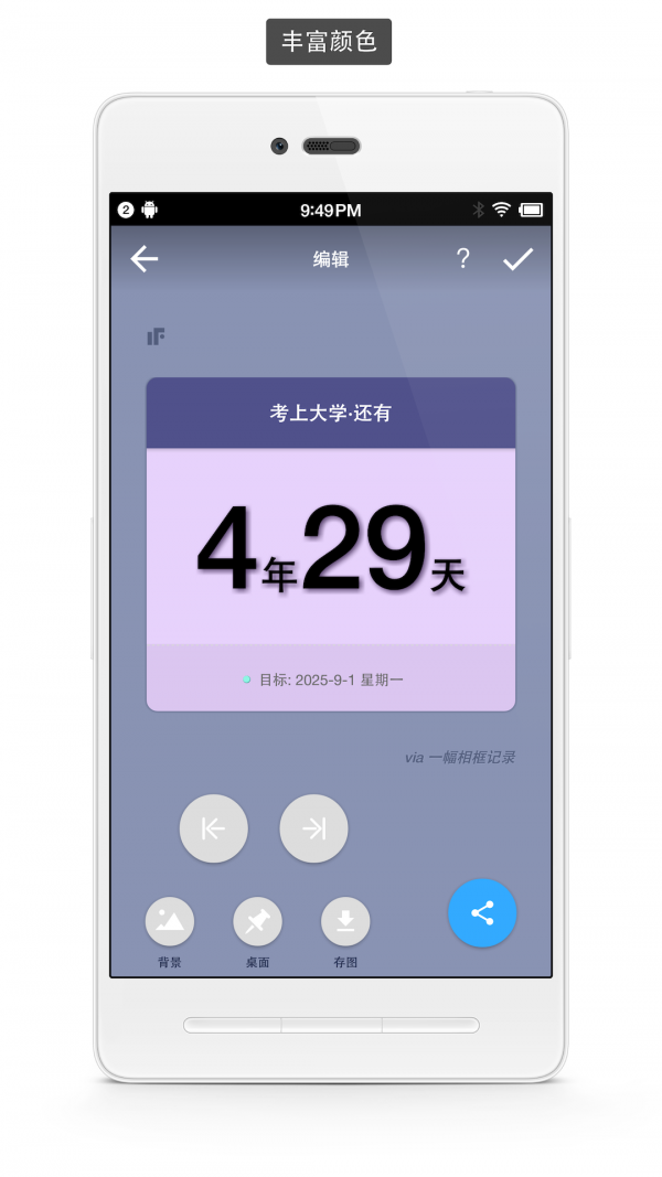 1、倒计时:记载节日,生日、爱情日、记念日、测验倒计时、主要日程等;