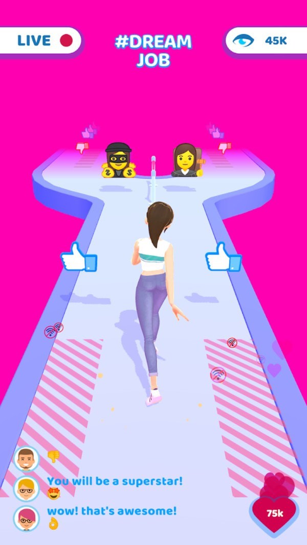 网红博主游戏是一款主打休闲玩法的闯关手游,这款手游中的玩家将在跑道上开启挑战,你可以一路闯关,躲避关卡中的各种困难,不断闯关吸引更多观众订阅,一举跃升成为网红博主。