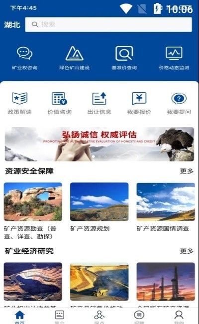 永矿通是专门的矿业服务软件,该软件的主要功能是帮助用户进行矿业的评价和矿业权征询功能,用户使用起来非常的方便,软件强大的功能和性能在这块有着非常不错的表现,用户可以在线阅读行业的政策和其他内容,用户可根据自己的需求来进行操作,软件可以满足用户的一切需求,非常的实用给到用户最完善的体验,快来下载试试吧。