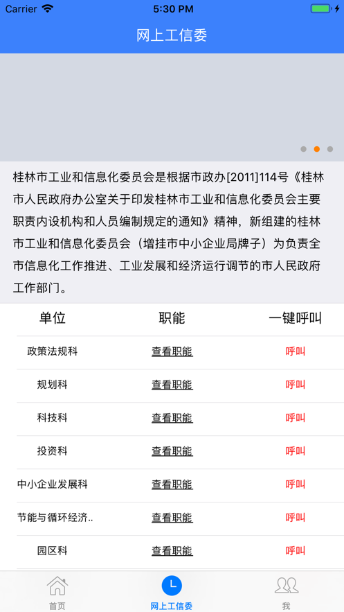 2、呼叫工信委单位,找到需要服务机构单位就能够迅速呼叫