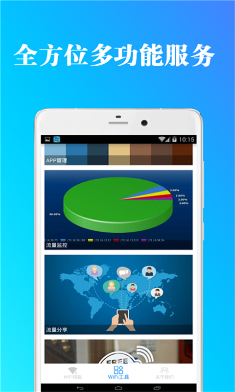 1、可以保证用户无线收集运用平安的办理东西,内置了多元化的性能板块不论是收集的速度测试对收集的动摇环境也能开启清楚的领会;