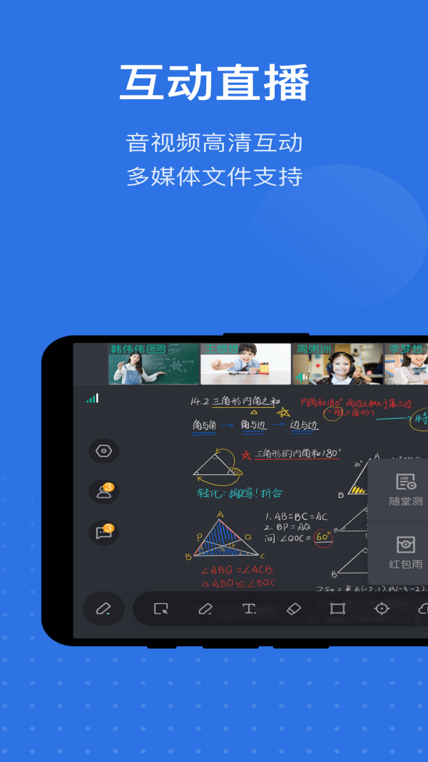随时随地,云端畅谈,高效协作与分享。支持多种格式文档线上协作,经由互动板书、语音与图片相结合的形式让演示交流更便利生动,支持桌面端及时共享屏幕