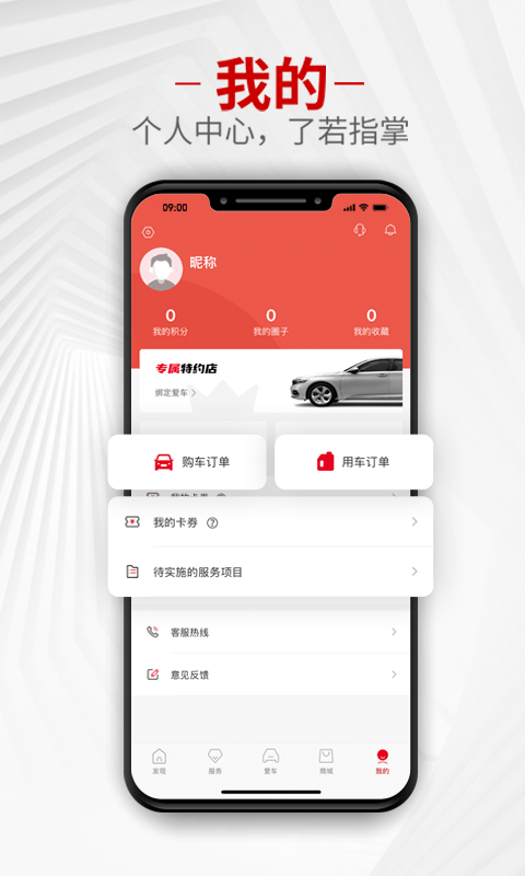 爱车:爱车车况全掌控!绑定爱车,体验互联服务或智能控车功能