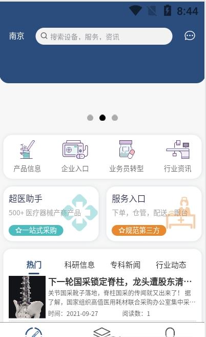 1、针对营业员或跟台员开辟的医疗器械服务平台,平台会聚了医疗行业的热门资讯;