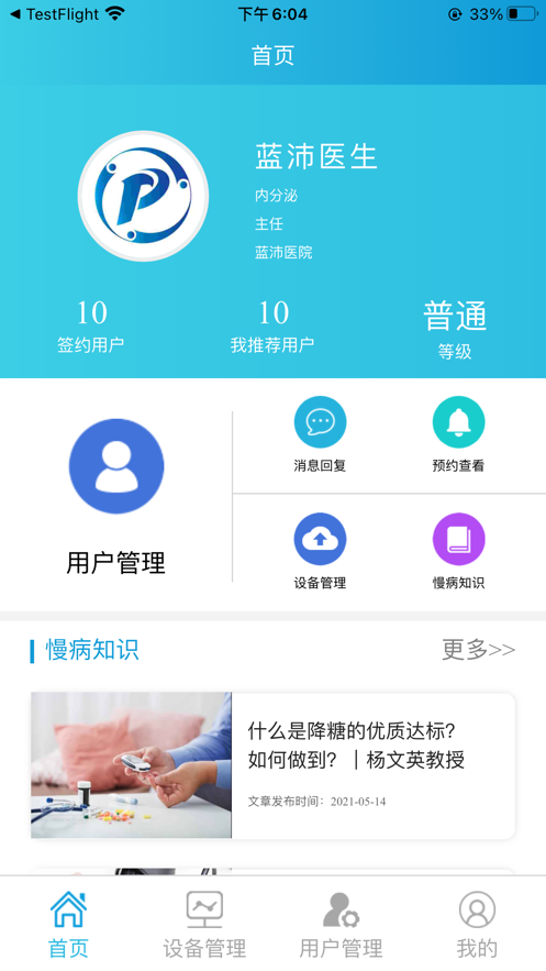 提升医生的服务项目高效率,糖尿病患者患者的信息一键提交,便于医生开展有关信息查看