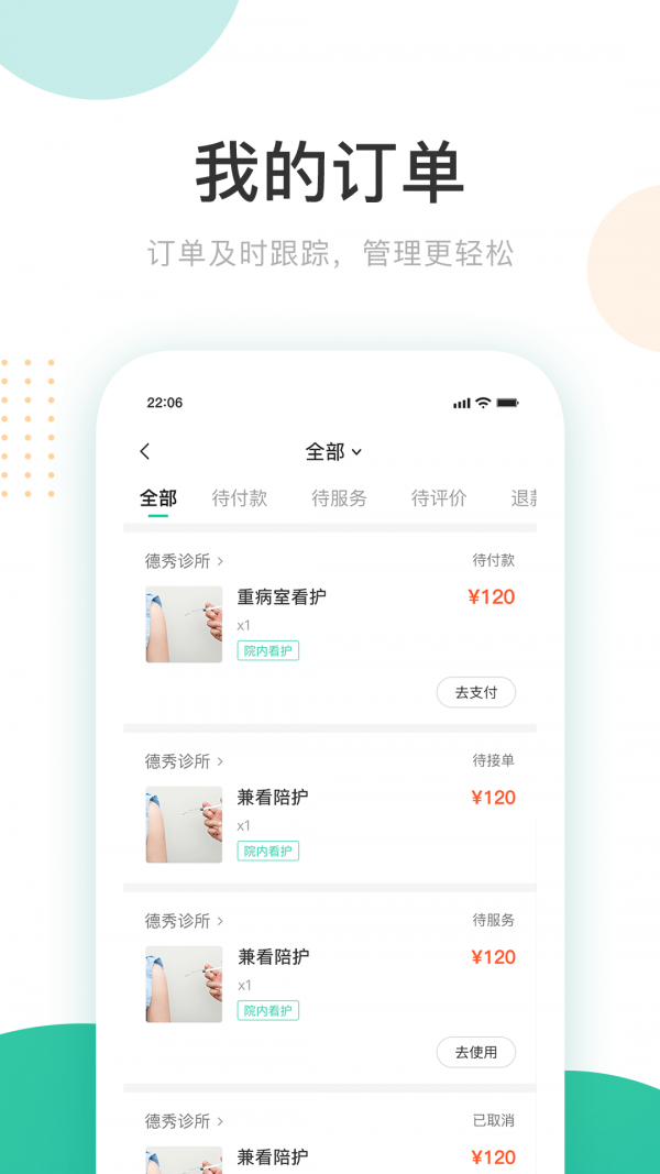 好康医护app拥有非常多专业的护理员,能够为客户提供优质的护理服务。平台上所有的护理人员都是经过严格的培训,能够提供高质量的照护服务。户们可以线上自行下单,可以查看护理员资料并选择自己满意的护理员,用户们可以线上为护理院的服务进行评价,也可以线上投诉或者提供建议。
