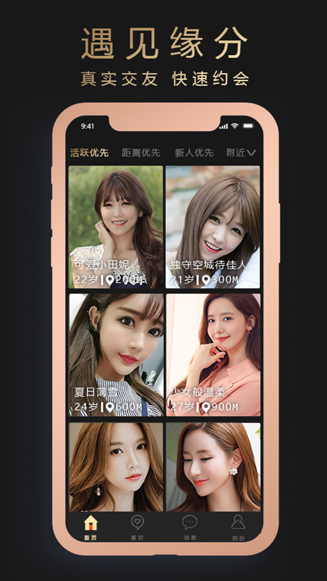 2、基于确认地理位置优先举荐给您四周优良用户,看得见的缘分、说见就见;