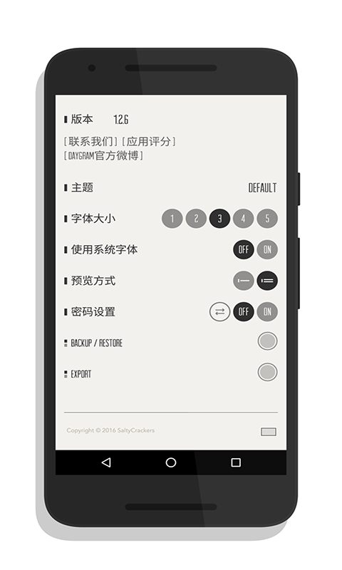 字体大小可以随意调节,画面更简洁,看着更觉清爽,文件自动备份,让你再也不用担心出现文件丢失的问题了,Daygram app让你能坚持将日记给写下去。应用启动速度更快,记录更随意,你可以通过该软件随时记录自己脑海中一闪而过的灵感。