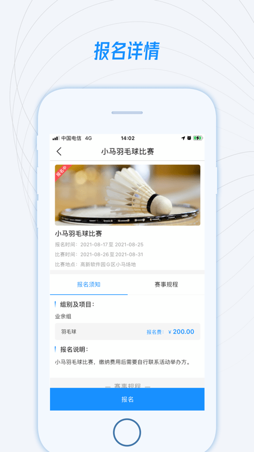 集羽毛球项目的报名渠道。大量赛事,等你报名