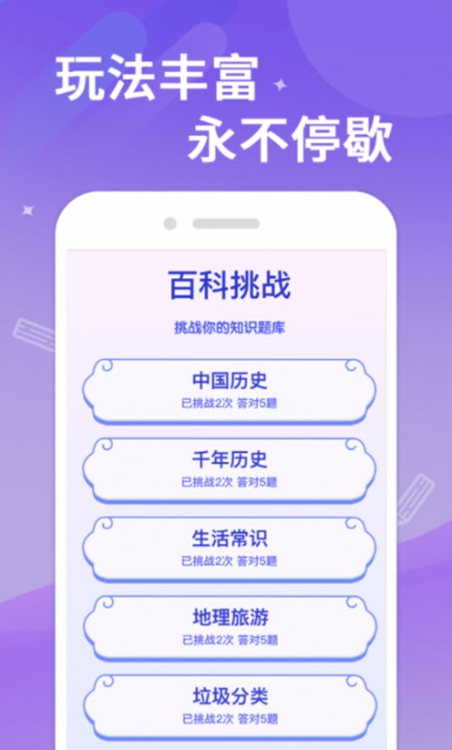 1、一款休闲益智类答题互动平台,干货满满,经典标题问题数不堪数,操作易懂,边兴趣答题边收成日常基础知识。