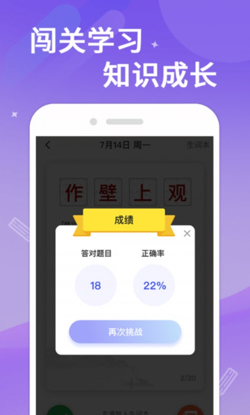1、一款以成语问答答题弄法为主的兴趣进修平台,在这里帮忙你学历和了解更多的成语。