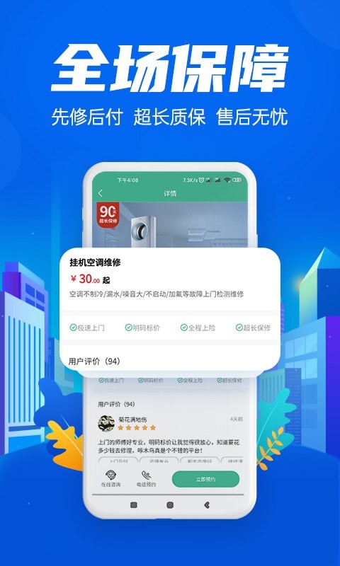啄木鸟空调维修app是今天小编带来的一款非常实用的空调维修软件。平台上拥有非常多专业的维修人员,能够为用户们提供优质的维修服务,高效地修理所有故障的空调,同时提供保修服务,所有的维修价格都是明码标价的,有需要的朋友们可以放心下单。如果这款软件能够对你提供帮助,赶紧下载试一试吧!