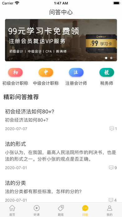 在这里,有财会书店、每日一练、实务学习、继续教育...更多硬核功能,还有免费资料、免费试听、签到金币,新人有礼