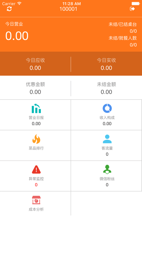 今日的实收金额、未结金额、今日应收、已结桌台 未结桌台、就餐人数等等,都会及时展示,很好的掌握餐厅营业情况,数据准确、直观,切实的展示出用户想知道的,无需后后台查看繁琐的一推数据