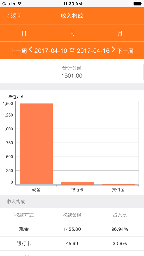 在营业日报、收入构成、门店成本分析、菜品构成等功能里面都有折线图和柱状图,来分析一段时间内的营业额的走向和各种支付方式的占比,数据分析能够给您的决策提供依据,做到有数据支持,决策更科学